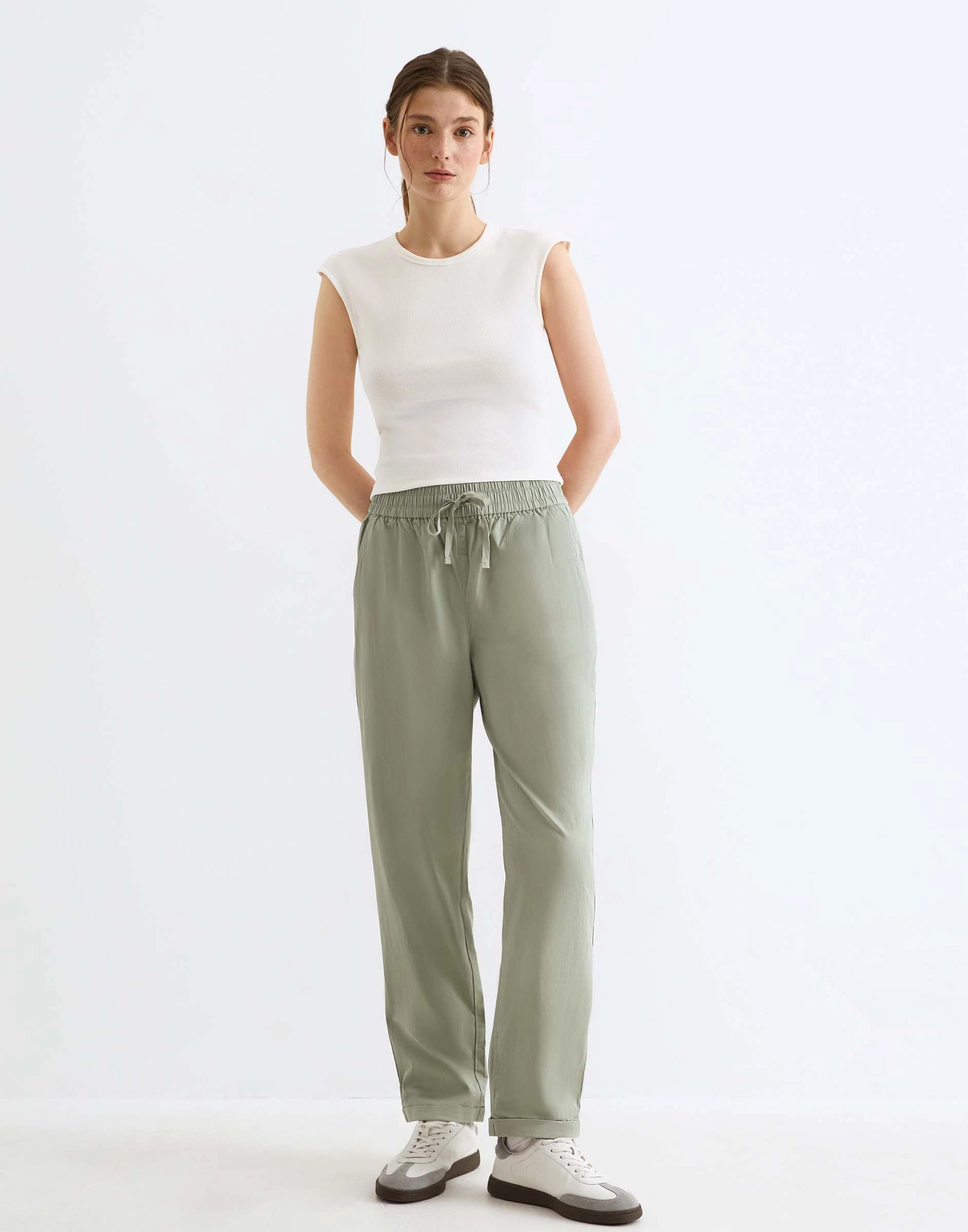 Оливковые брюки Easy fit с подворотами Gpt010628-2