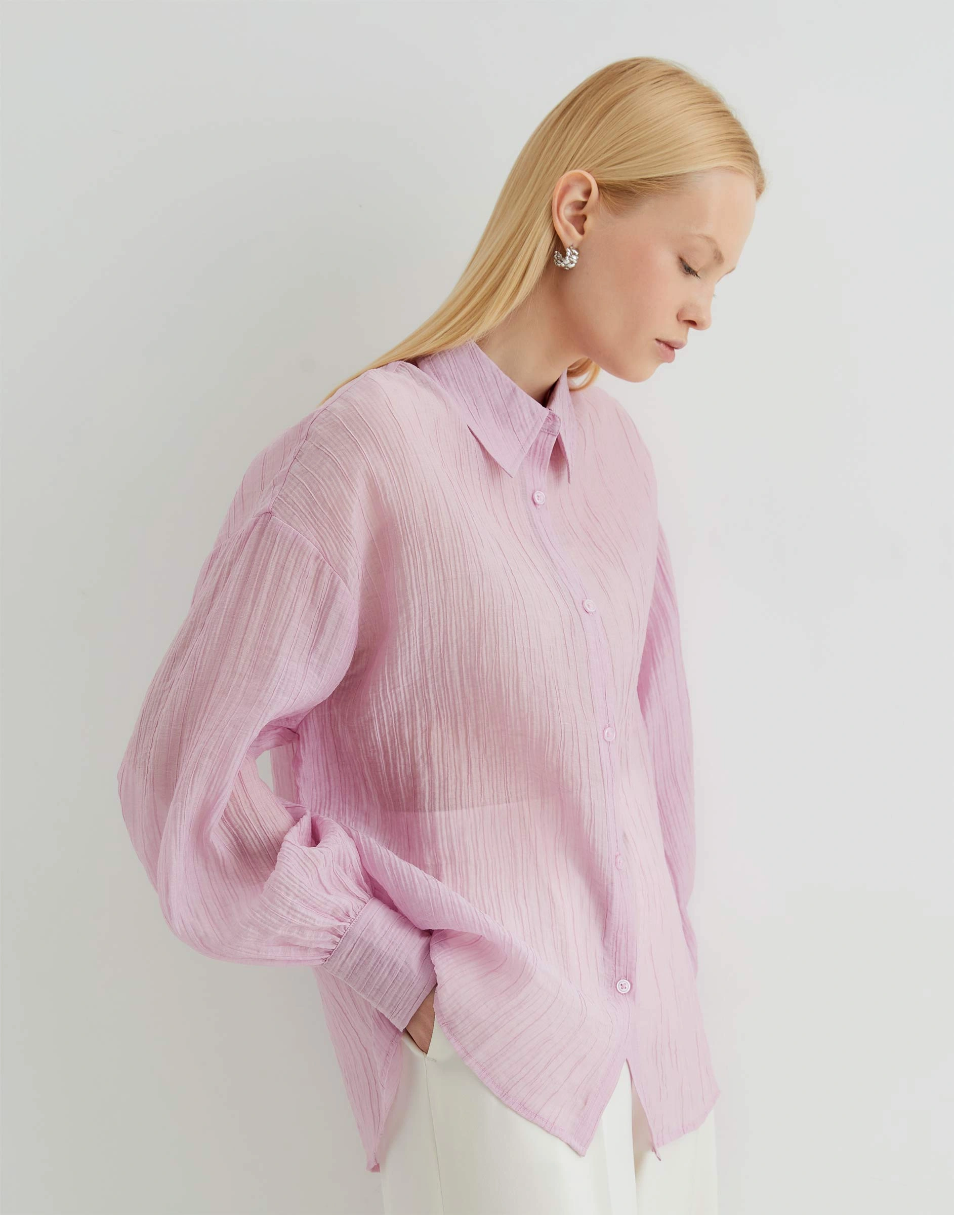 Розовая рубашка oversize с пышными рукавами Gwt004880-1