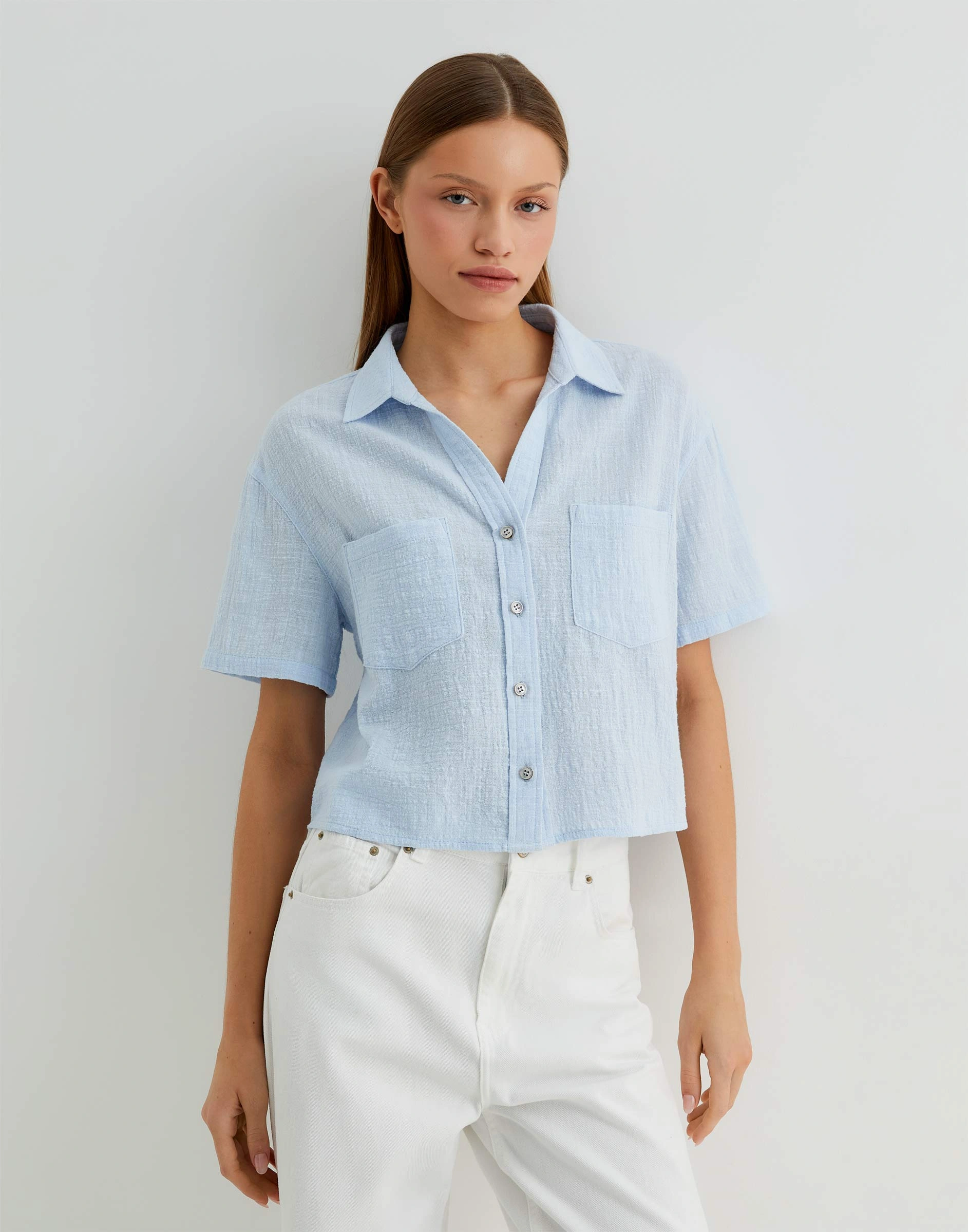 Светло-синяя укороченная рубашка Gwt004804-2
