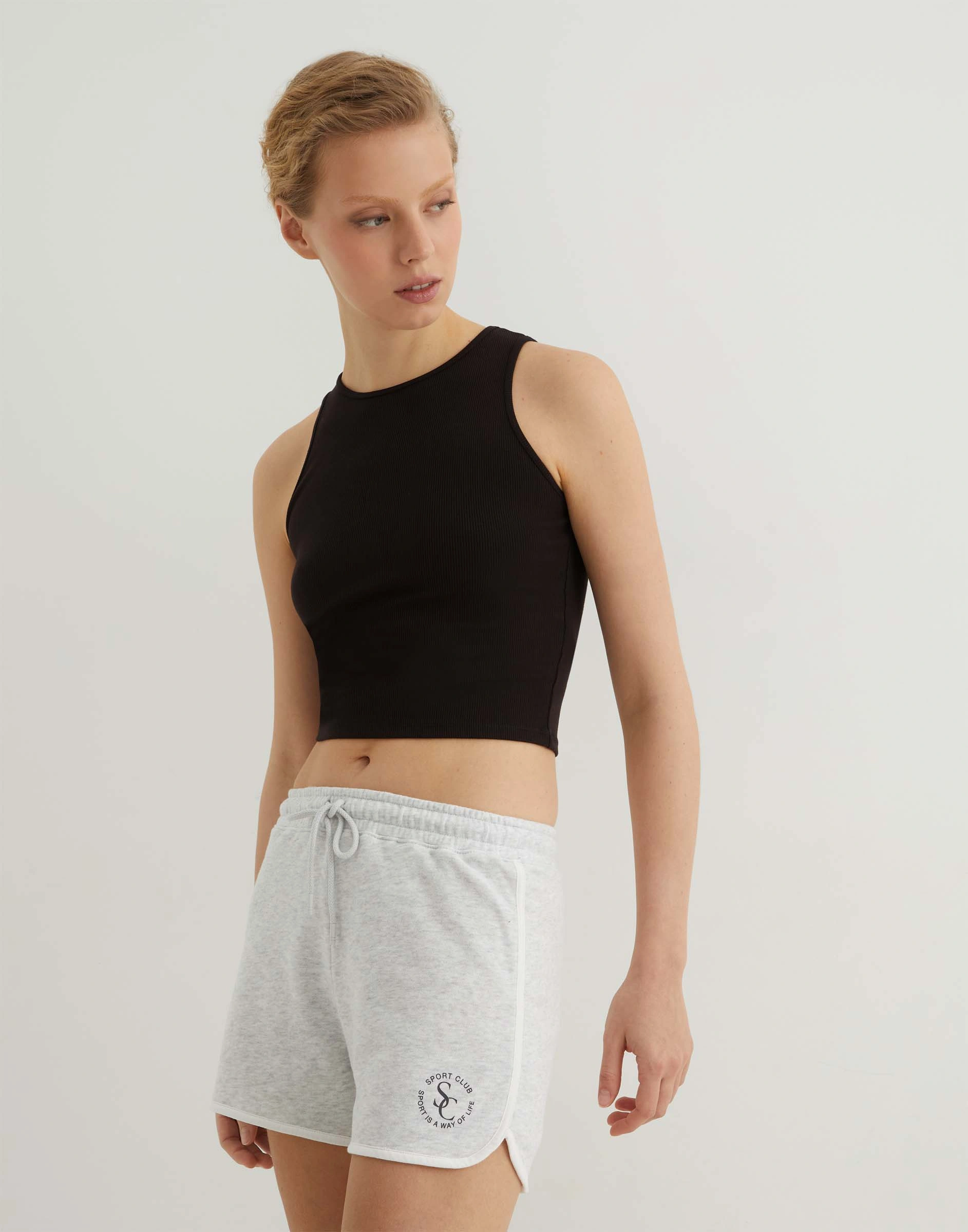 Серые шорты с принтом и контрастной отделкой Gsh012867-4