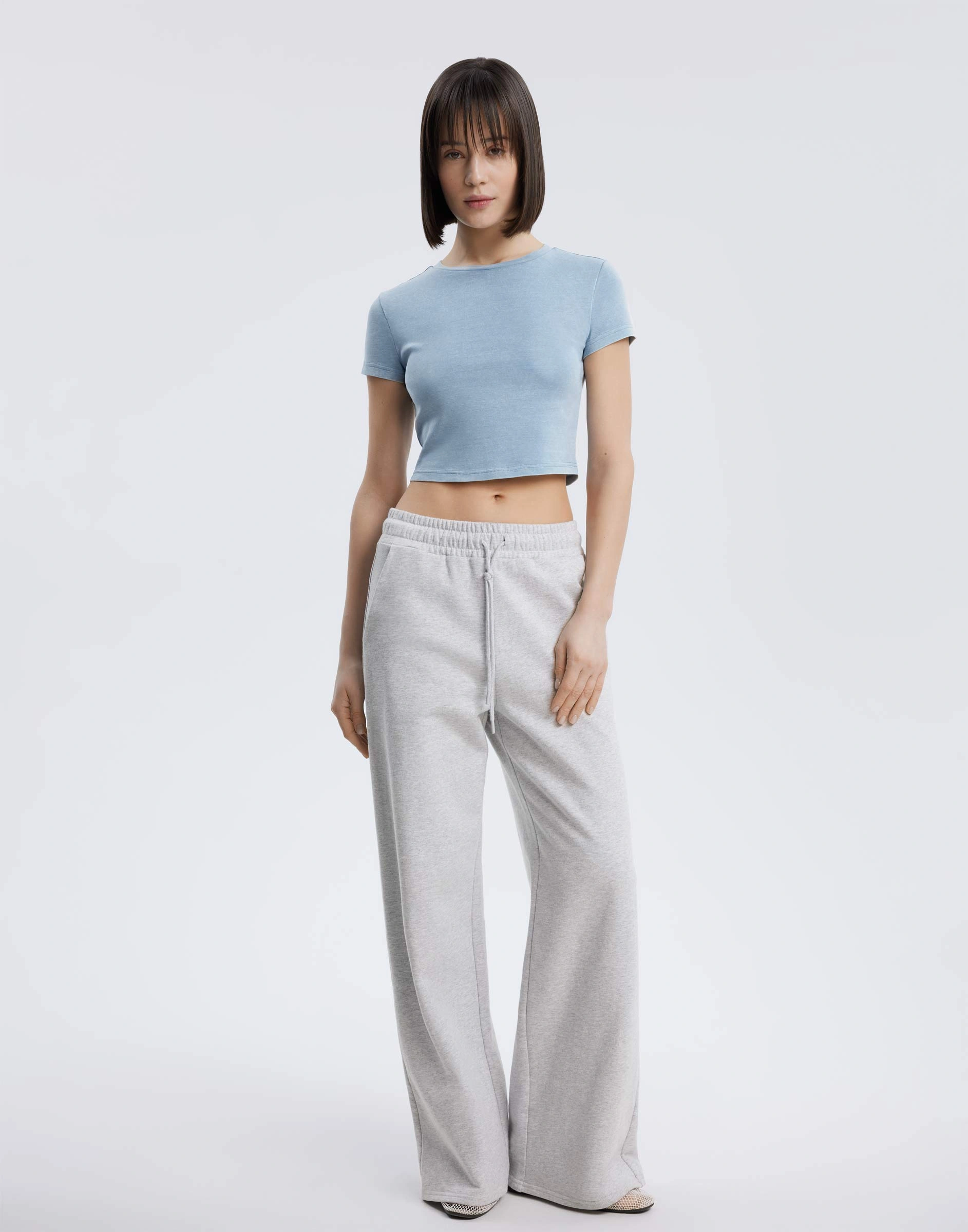 Синяя укороченная футболка в рубчик Gkt026683-1