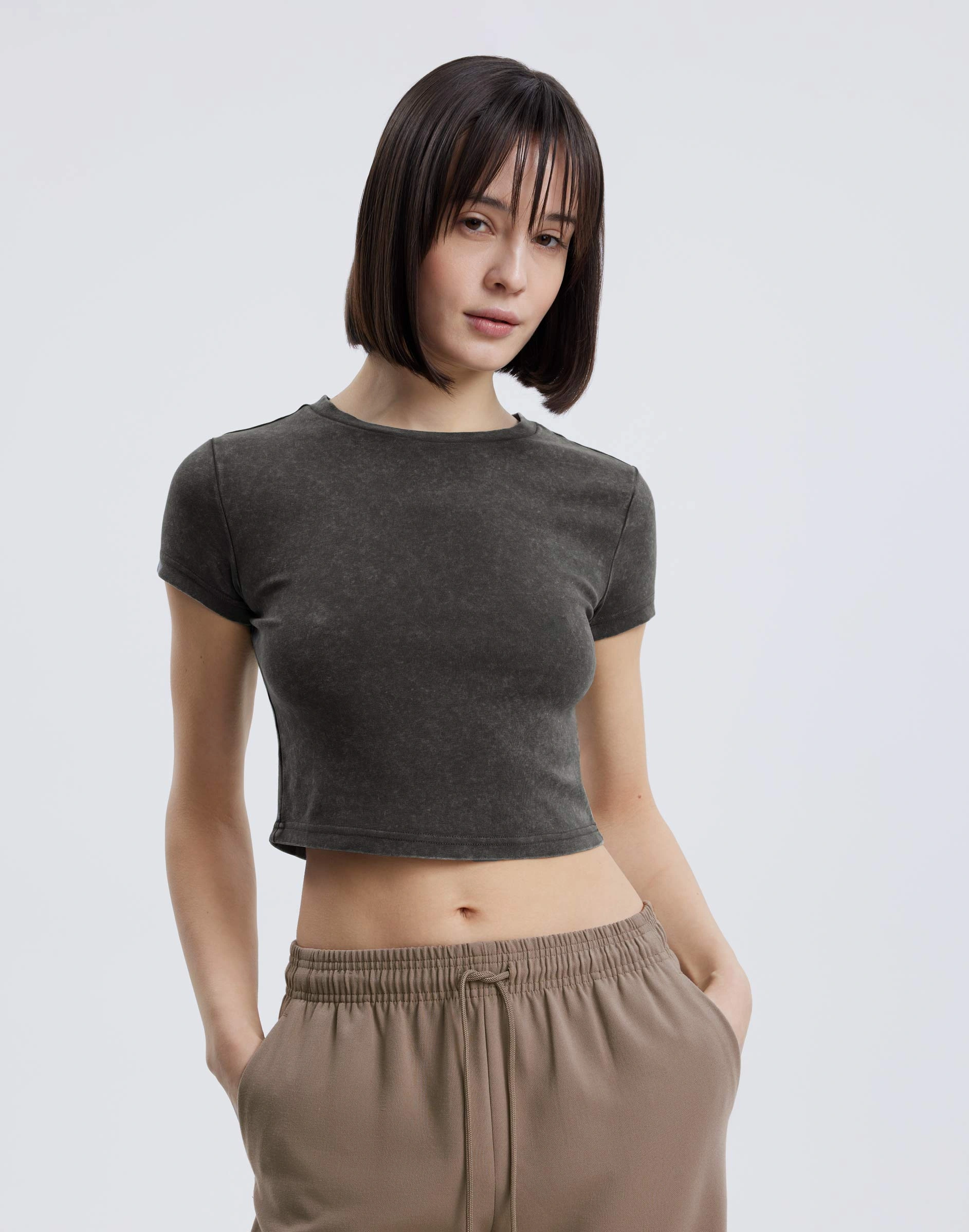Тёмно-серая укороченная футболка в рубчик Gkt026683-3