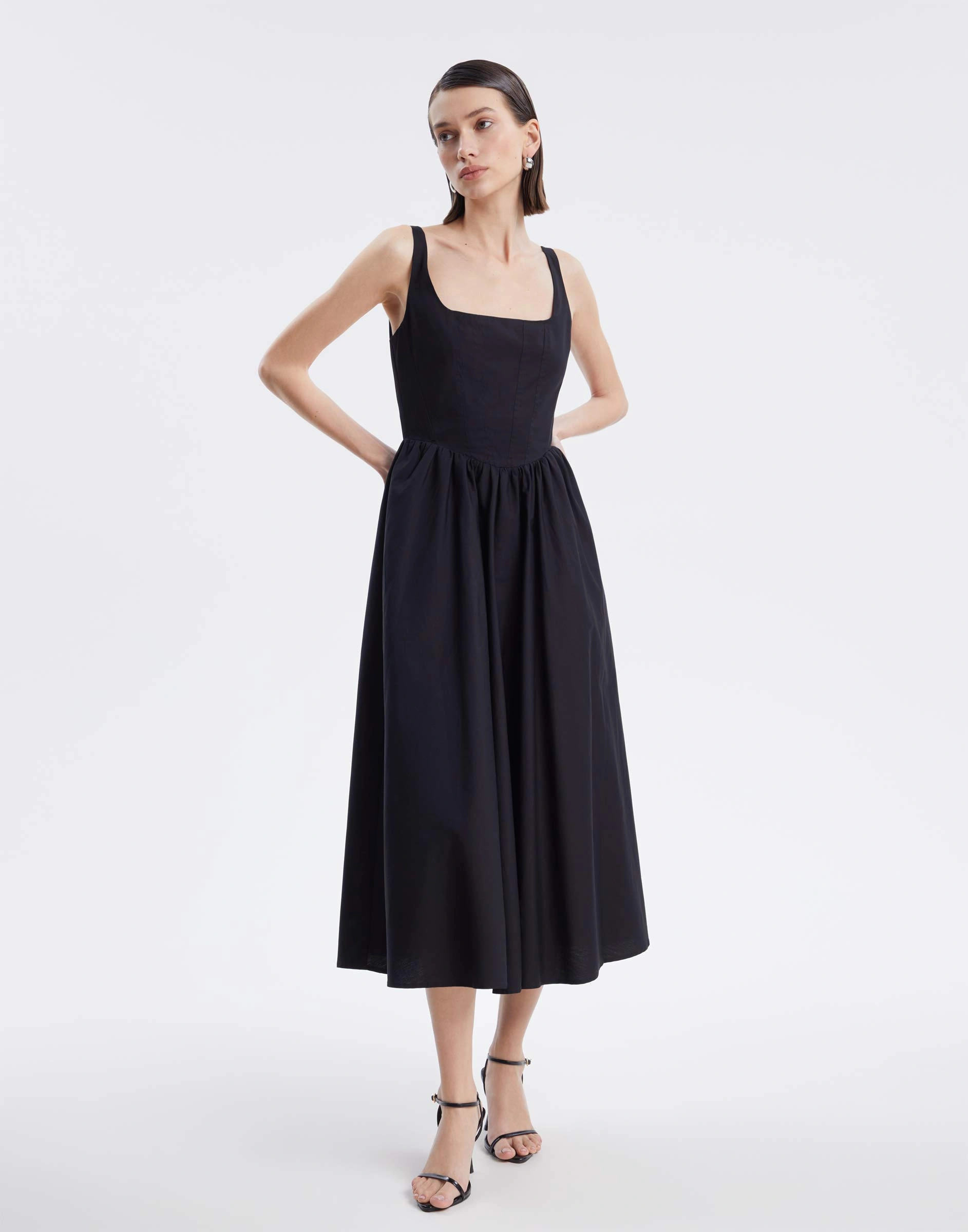 Чёрное платье макси с вырезом каре Gdr028447-2