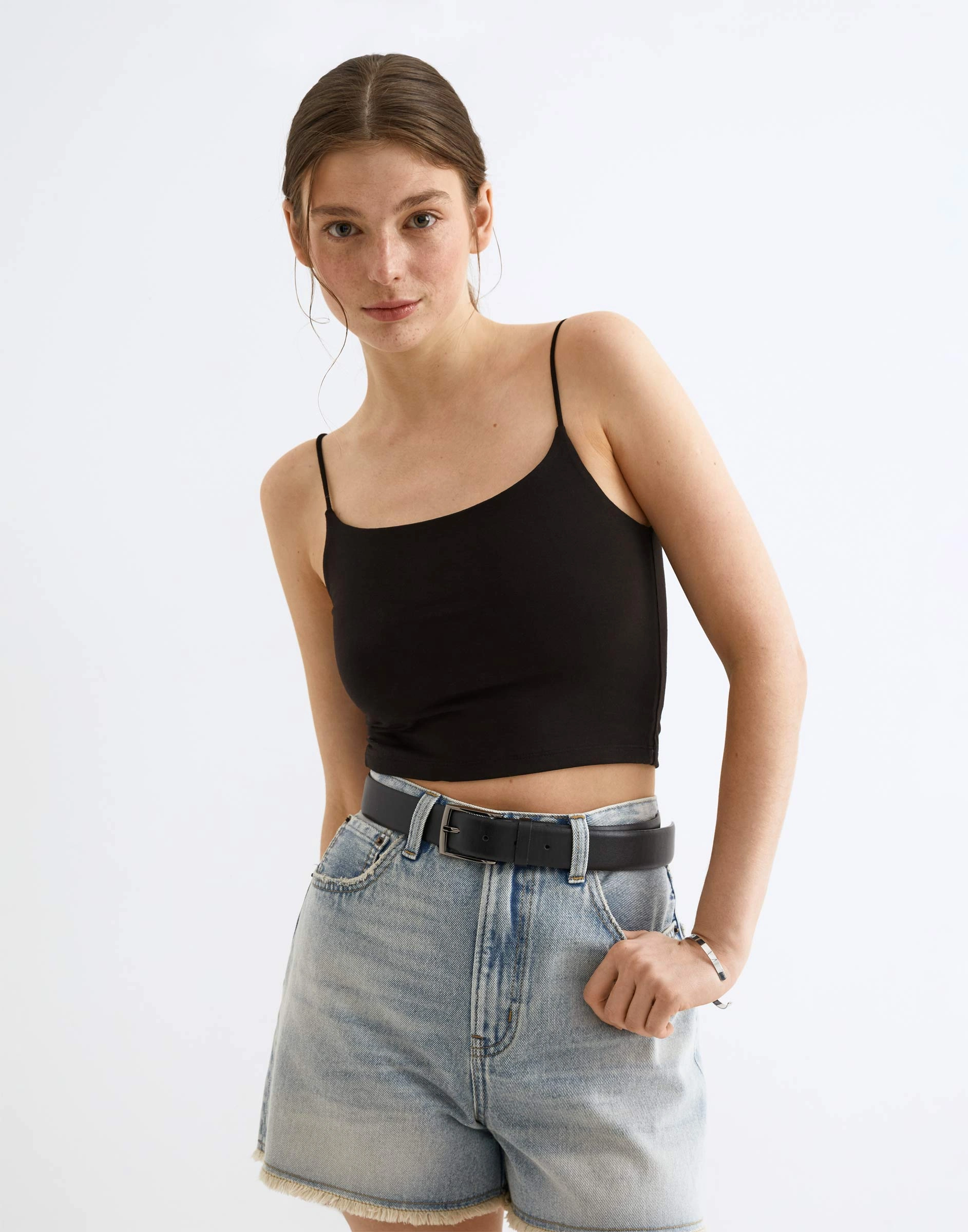 Чёрный базовый кроп-топ на тонких бретелях Gtn004680-3