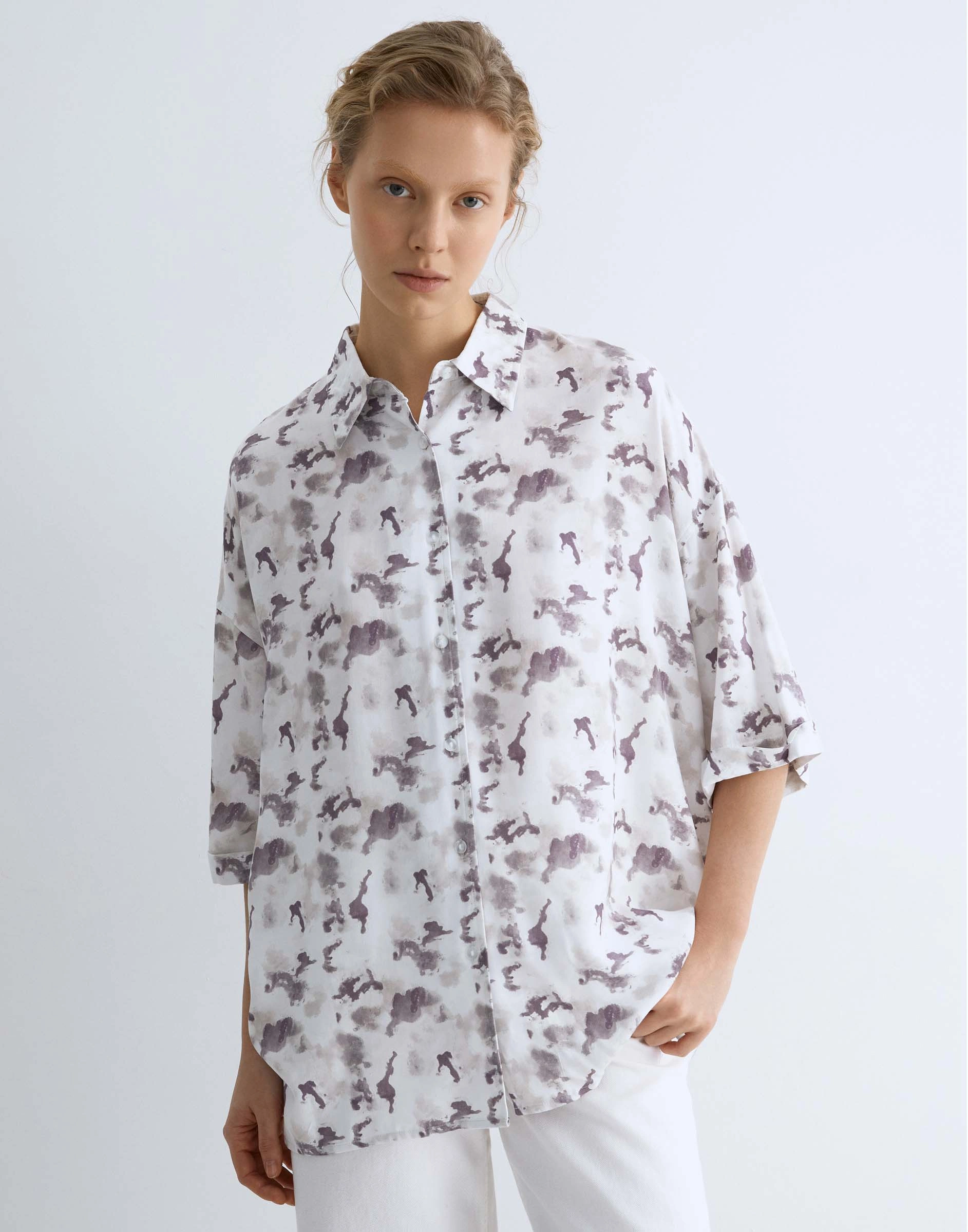 Белая рубашка superoversize c коротким рукавом и принтом Gwt003610-1