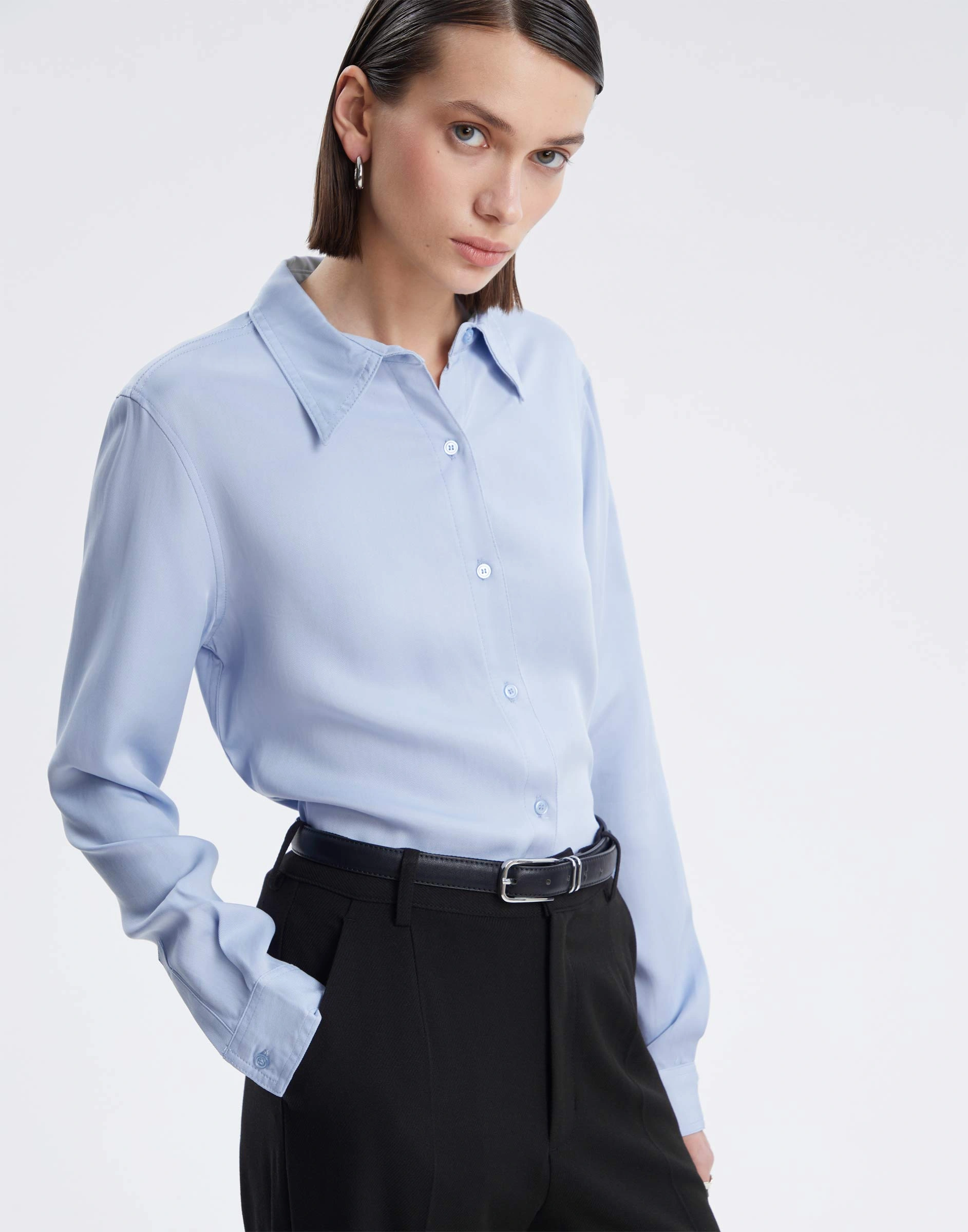 Голубая свободная рубашка из лиоцелла Gwt004701-2
