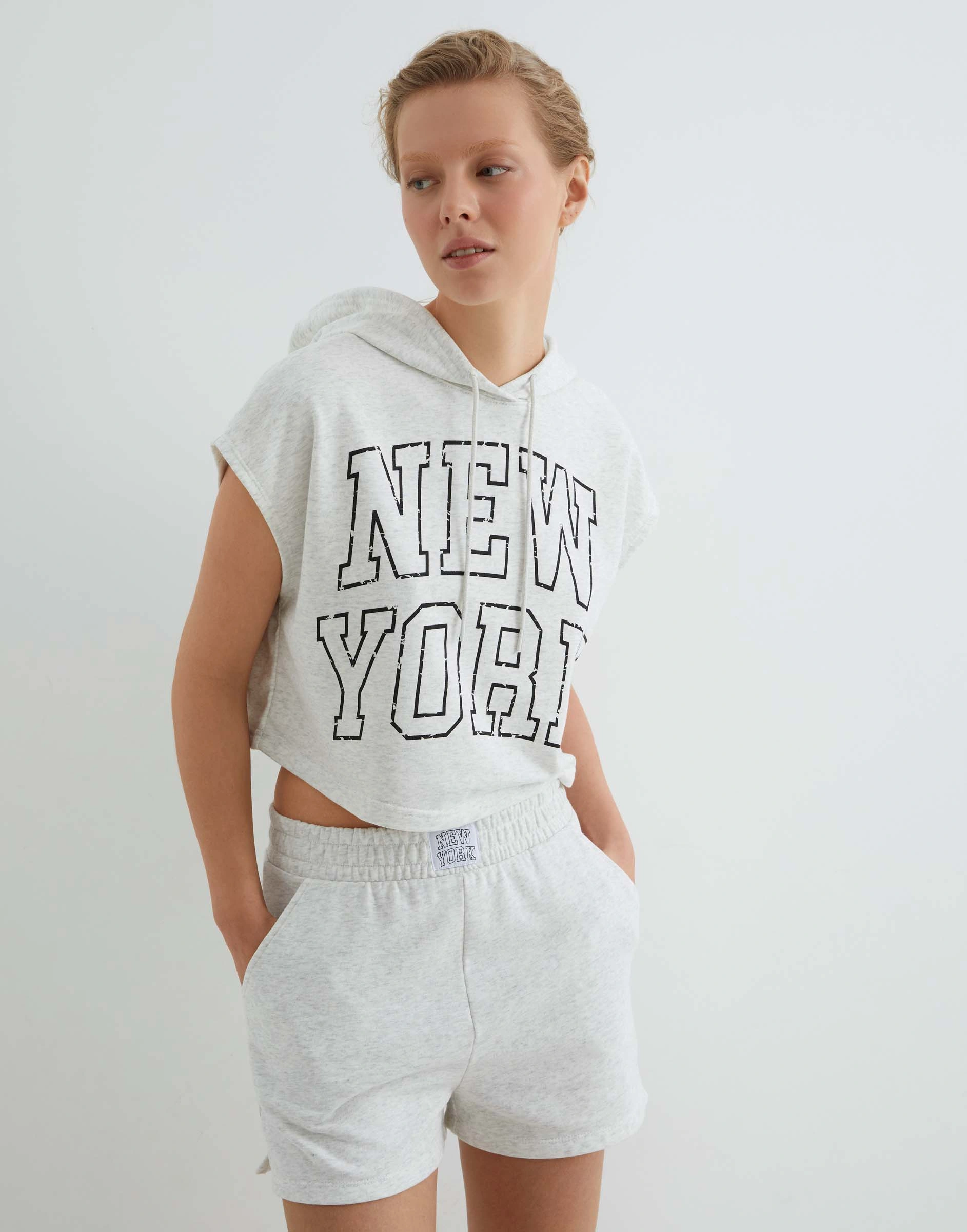 Серое укороченное худи oversize без рукавов с принтом Gac024646-3
