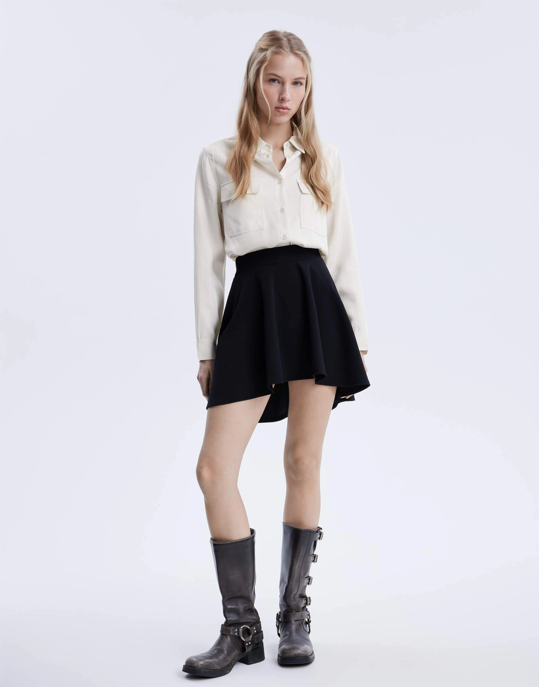 Чёрная асимметричная мини-юбка Gsk019781-1