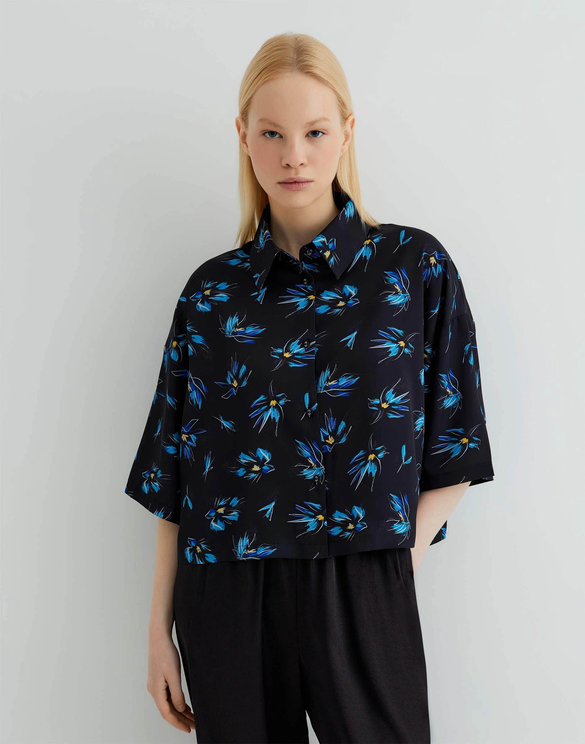 Чёрная укороченная рубашка с принтом Gwt004502-1