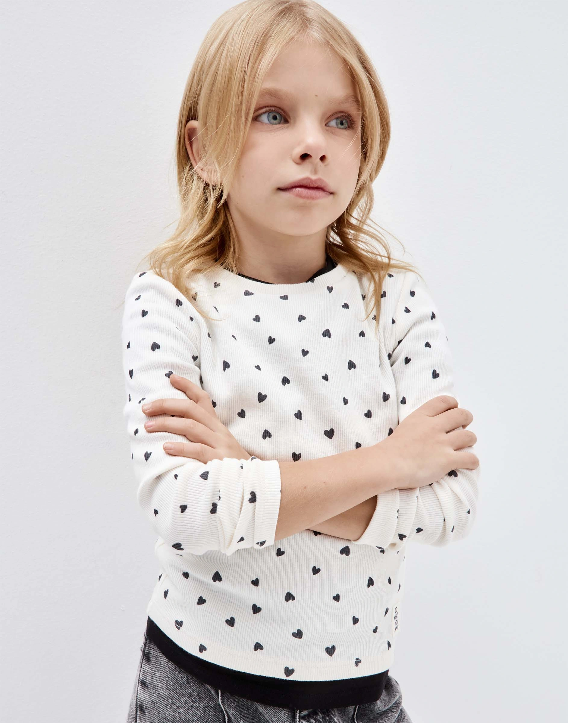 Молочный лонгслив с принтом для девочки Gkt027100-1