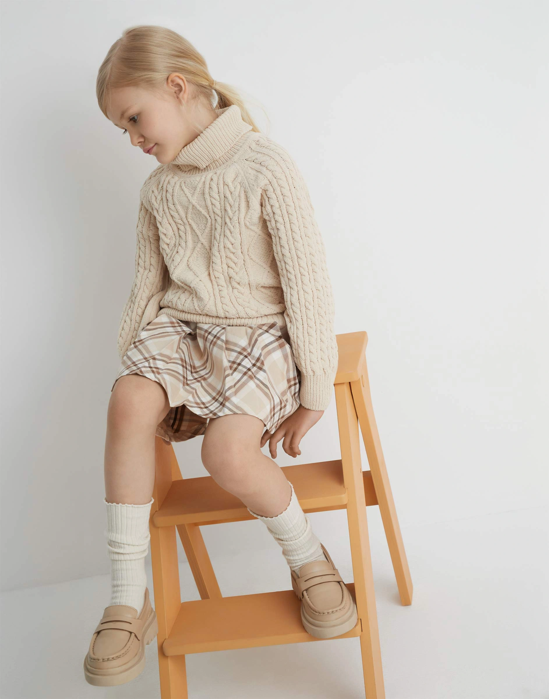 Бежевый свитер с косами для девочки Gsw007891-2