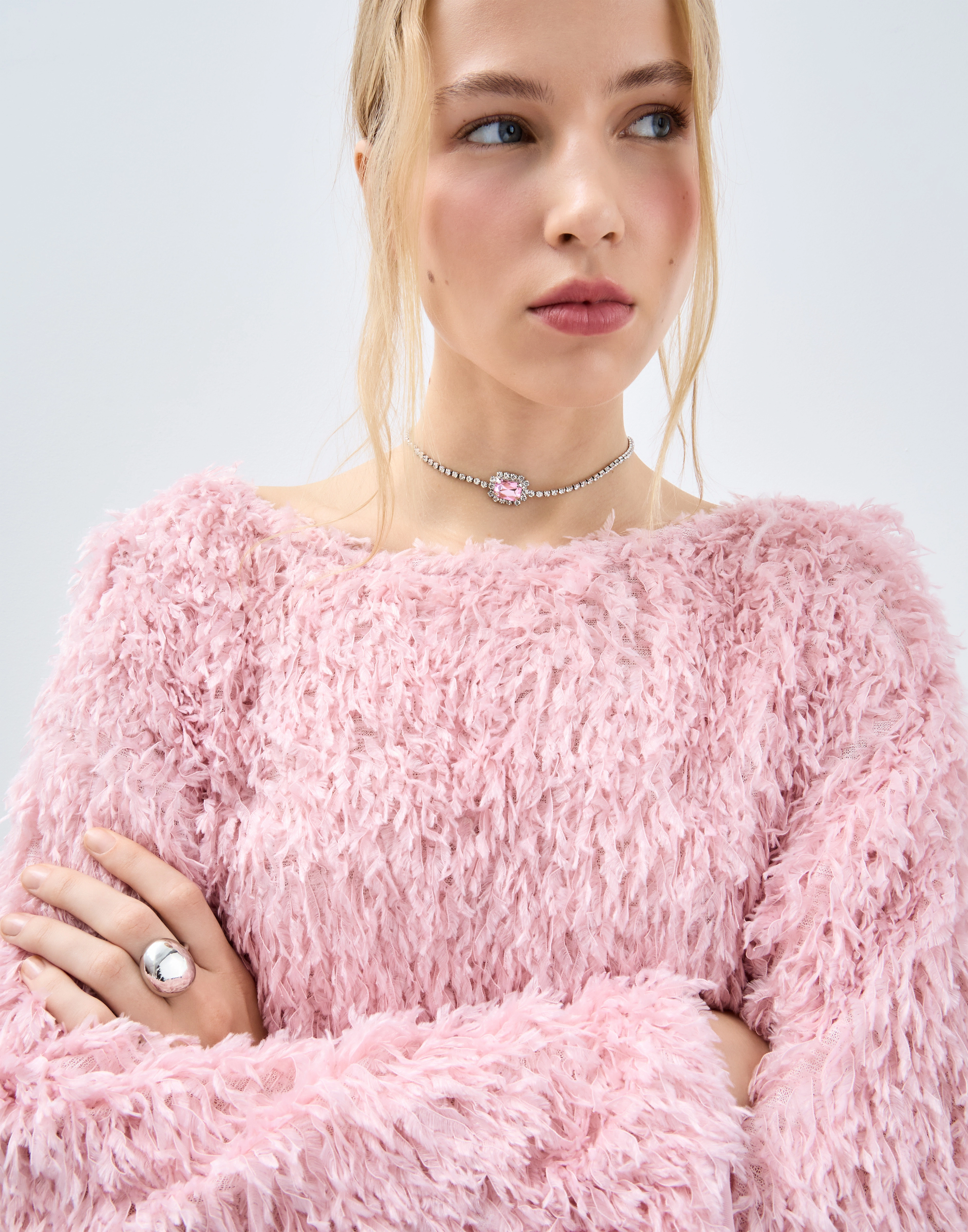 Серебристый чокер со стразами Gjw013655-1