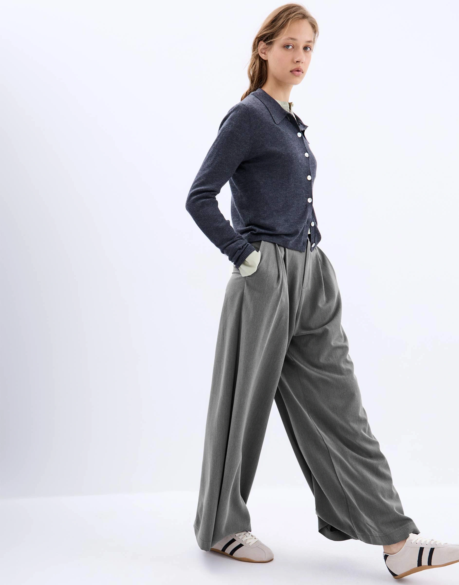 Серые брюки Wide leg с защипами Gpt010740-1