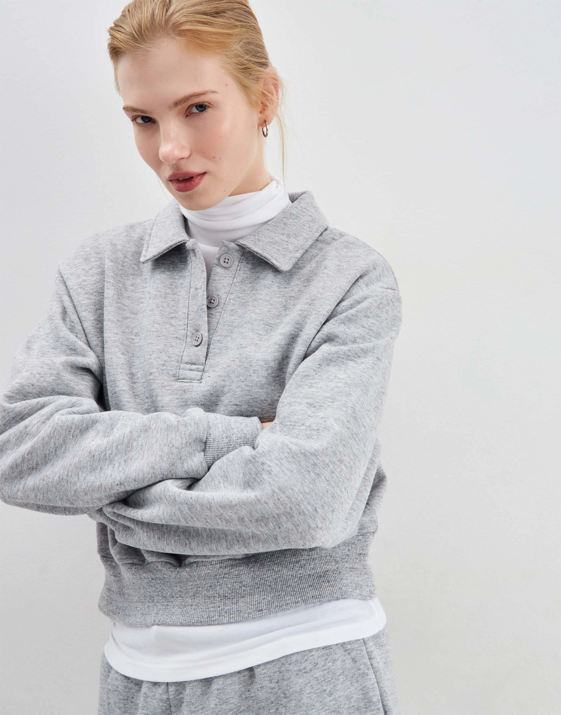 Тёмно-серый свитшот-поло с планкой на пуговицах Gac025017-2