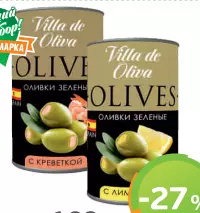 Оливки зеленые Вилла де Олива с лимоном/с креветкой, 314 мл