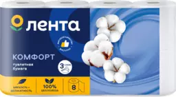 Бумага туалетная Лента 3 слоя белая, 8шт
