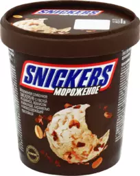 Мороженое Snickers Ice Cream, сливочное с пастой из арахиса и карамелью 8.5%, без змж, ведро, 340г