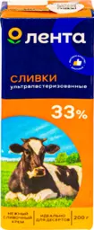 Сливки ультрапастеризованные Лента 33%, без змж, 200г