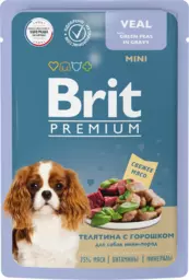 Корм консервированный для взрослых собак Brit Premium Телятина с зеленым горошком в соусе, 85г