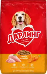 Корм сухой для взрослых собак Дарлинг с птицей и добавлением овощей, 500г