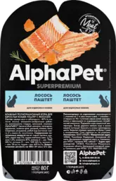 Корм влажный для кошек Alphapet Superpemium паштет с лососем, 80г