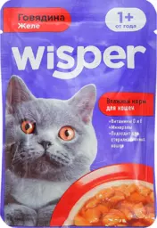 Корм влажный для кошек Wisper с говядиной в желе, 75г