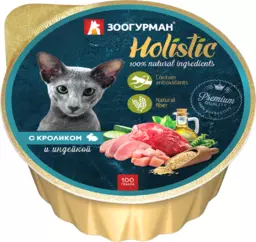 Корм влажный для кошек Зоогурман Holistic с кроликом и индейкой, 100г