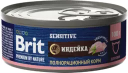 Корм консервированный для взрослых кошек Brit Premium by Nature с мясом индейки, при чувствительном пищеварении, 100г