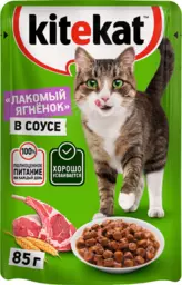 Корм консервированный для взрослых кошек Kitekat Лакомый ягненок с ягненком в соусе, 85г