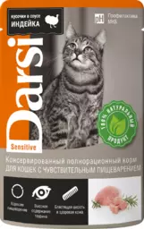 Корм консервированный для кошек Darsi Индейка, с чувствительным пищеварением, 85г