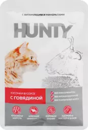 Корм консервированный для кошек Hunty сочные кусочки в соусе c говядиной, 85г