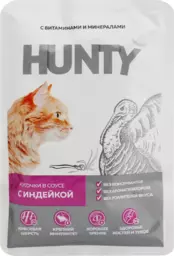 Корм консервированный для кошек Hunty сочные кусочки в соусе с индейкой, 85г