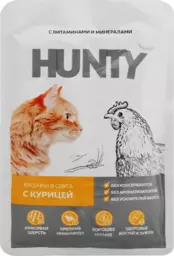 Корм консервированный для кошек Hunty сочные кусочки в соусе с курицей, 85г