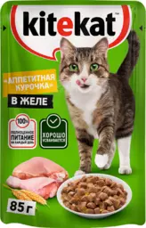 Корм консервированный для кошек Kitekat c сочными кусочками курицы в желе, 85г
