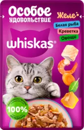 Корм консервированный для кошек Whiskas Особое удовольствие Белая рыба, креветка и овощи, желе, 75г