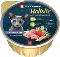 Корм консервированный для кошек Зоогурман Holistic с курицей и ягненком, 100г
