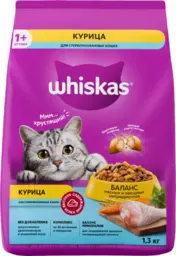 Корм сухой для взрослых кошек Whiskas с курицей, 1.3кг