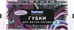 Губки для посуды Homex Home:expert Очень полосатые 9.5x6,5x4,1см, трехслойные, черный/белый, Арт. 0641, 3шт