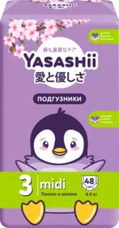 Подгузники Yasashii Midi 4–9кг, 48шт