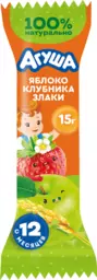 Батончик фруктово-злаковый детский Агуша Яблоко, клубника и злаки, с 12 месяцев, 15г
