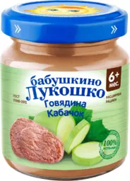 Пюре мясо-овощное Бабушкино Лукошко Говядина с кабачками, с 6 месяцев, 100г