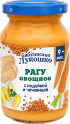 Пюре мясо-овощное Бабушкино Лукошко Рагу овощное с индейкой и чечевицей, с 9 месяцев, 190г