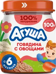 Пюре мясо-растительное детское Агуша Говядина с овощами, с 6 месяцев, 100г