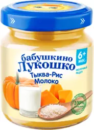 Пюре овощное Бабушкино Лукошко Тыква-рис-молоко, с 6 месяцев, 100г