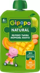 Пюре фруктово-овощное Gipopo Яблоко, тыква, морковь и манго, с 6 месяцев, 90г