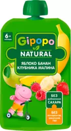 Пюре фруктово-ягодное Gipopo Яблоко, банан, малина и клубника, с 6 месяцев, 90г