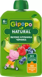 Пюре фруктово-ягодное Gipopo Яблоко, клубника и черника, с 6 месяцев, 90г
