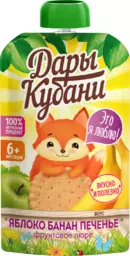 Пюре фруктовое Дары Кубани Яблоко, банан, печенье, с 6 месяцев, 90г