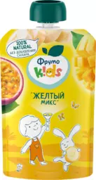 Пюре фруктовое Фрутоkids Желтый микс, яблоко, банан, абрикос, манго и маракуйя, с 8 месяцев, 90г