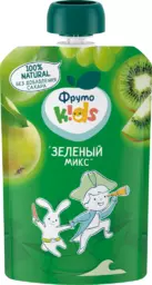 Пюре фруктовое Фрутоkids Зеленый микс, яблоко, груша, виноград и киви, с 9 месяцев, 90г